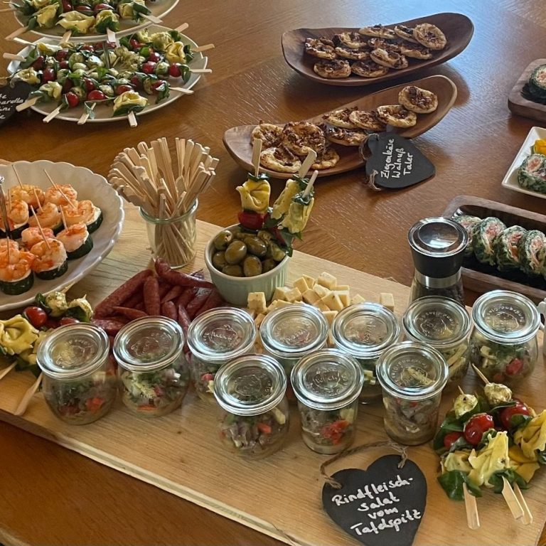 Ihr möchtet auf eurer Feier nicht auf unsere rheinhessischen Tapas verzichten? Oder euren Gästen ein kreatives Fingerfood-Buffet anbieten? Vielleicht plant ihr auch ein gemütliches Picknick im Weinberg?